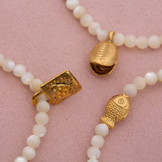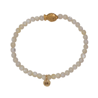 Dara Moon White Glass Bead Bracelet with Gold Pendant