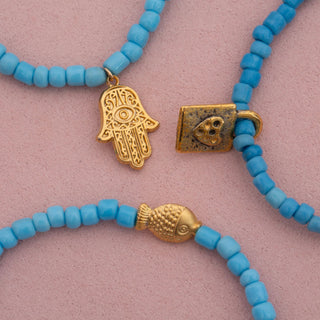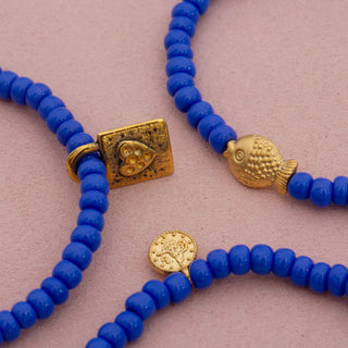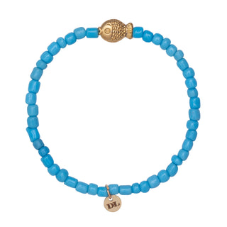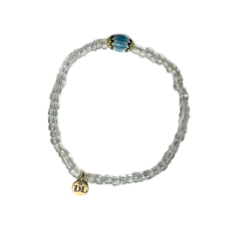 Dara Blue Glass Bead Bracelet with Gold Pendant
